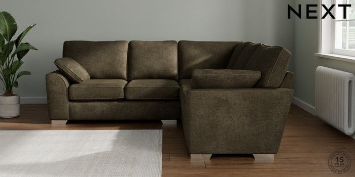 7.2.10 Stamford Medium Corner Sofa - Universal Plush Chenille Moss Green Large Square Angle - Chrome Metal | Made Click here to use our website with more accessibility support, for example screen readers