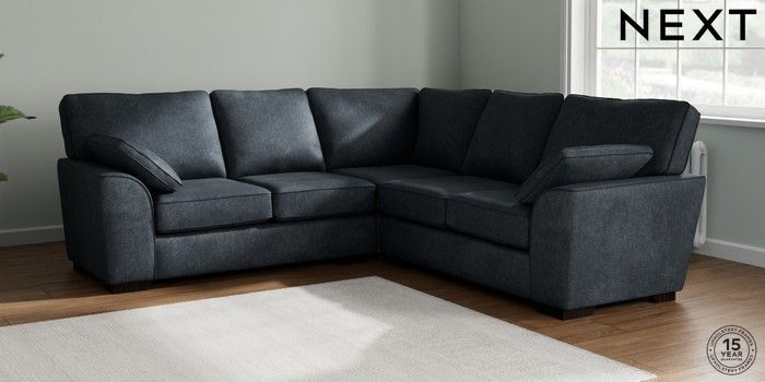 7.2.10 Stamford Medium Corner Sofa - Universal Plush Chenille Slate Blue Large Square Angle - Dark | Made Click here to use our website with more accessibility support, for example screen readers