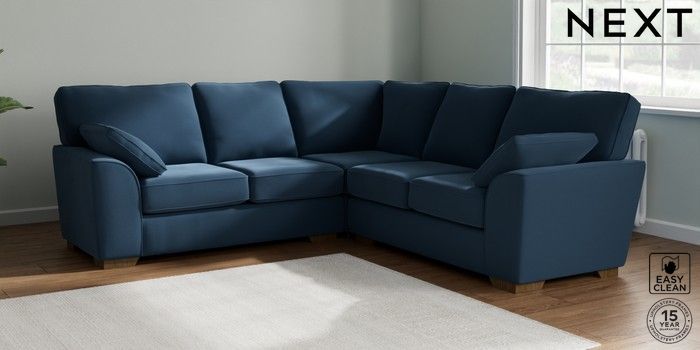 7.2.10 Stamford Medium Corner Sofa - Universal Plush Velvet Easy Clean Airforce Blue Large Square Angle - Mid | Made Click here to use our website with more accessibility support, for example screen readers