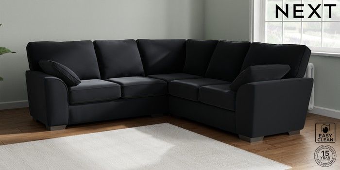 7.2.10 Stamford Medium Corner Sofa - Universal Plush Velvet Easy Clean Charcoal Grey Large Square Angle - Gunmetal | Made Click here to use our website with more accessibility support, for example screen readers