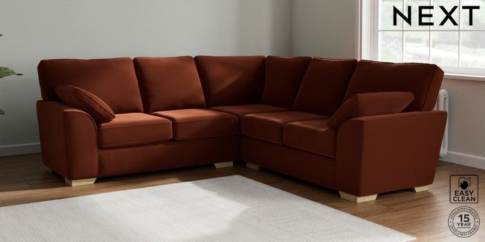 7.2.10 Stamford Medium Corner Sofa - Universal Plush Velvet Easy Clean Ginger Orange Large Square Angle - Light | Made Click here to use our website with more accessibility support, for example screen readers