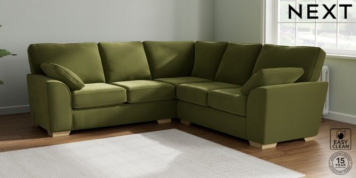 7.2.10 Stamford Medium Corner Sofa - Universal Plush Velvet Easy Clean Mid Olive Green Large Square Angle - Light | Made Click here to use our website with more accessibility support, for example screen readers