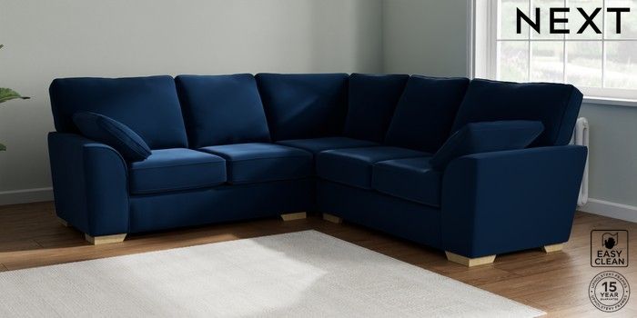 7.2.10 Stamford Medium Corner Sofa - Universal Plush Velvet Easy Clean Navy Blue Large Square Angle - Light | Made Click here to use our website with more accessibility support, for example screen readers