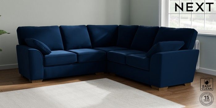 7.2.10 Stamford Medium Corner Sofa - Universal Plush Velvet Easy Clean Navy Blue Large Square Angle - Mid | Made Click here to use our website with more accessibility support, for example screen readers
