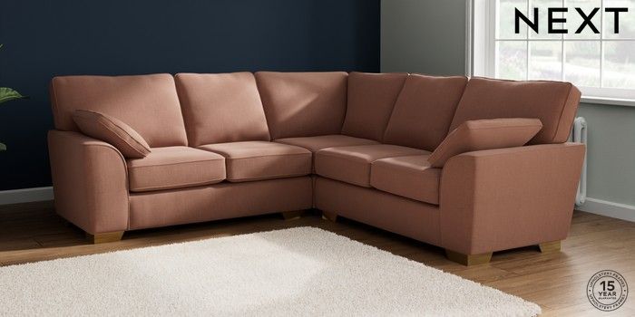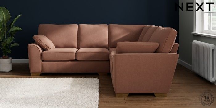 7.2.10 Stamford Medium Corner Sofa - Universal Relaxed Linen Look Light Rust Brown Large Square Angle - Brushed Brass | Made Click here to use our website with more accessibility support, for example screen readers
