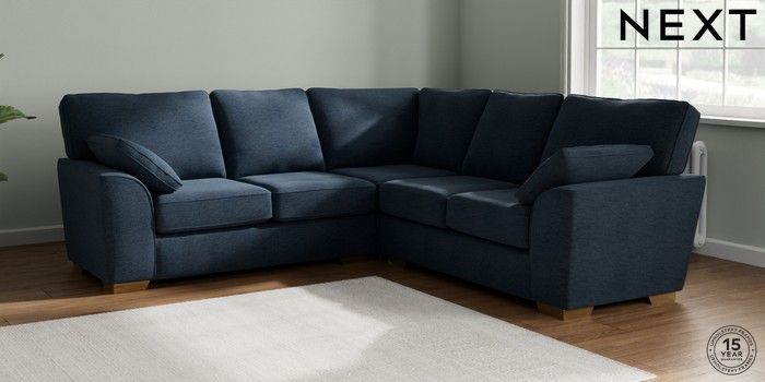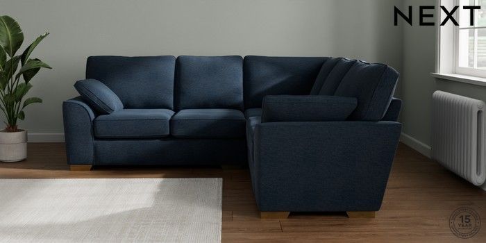 7.2.10 Stamford Medium Corner Sofa - Universal Ripple Chenille Dark Blue Large Square Angle - Brushed Brass | Made Click here to use our website with more accessibility support, for example screen readers