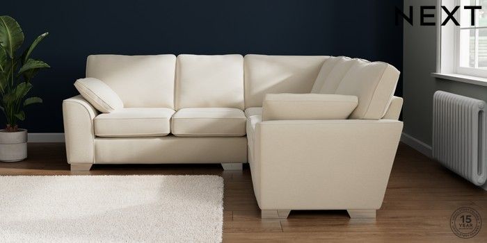 7.2.10 Stamford Medium Corner Sofa - Universal Ripple Chenille Oyster Large Square Angle - Chrome Metal | Made Click here to use our website with more accessibility support, for example screen readers