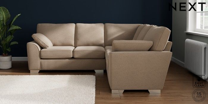 7.2.10 Stamford Medium Corner Sofa - Universal Tweedy Blend Easy Clean Light Dove Natural Large Square Angle - Chrome Metal | Made Click here to use our website with more accessibility support, for example screen readers