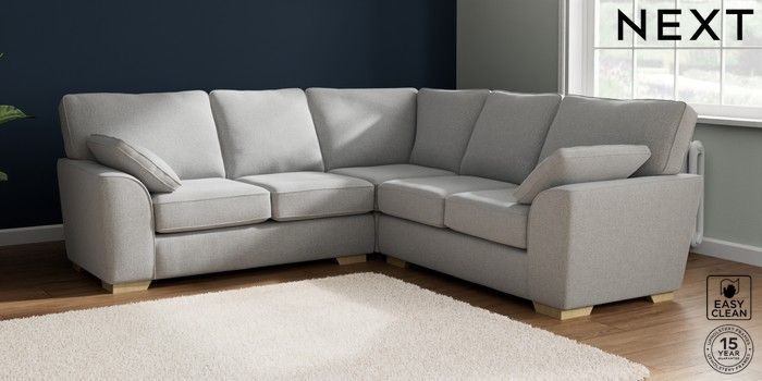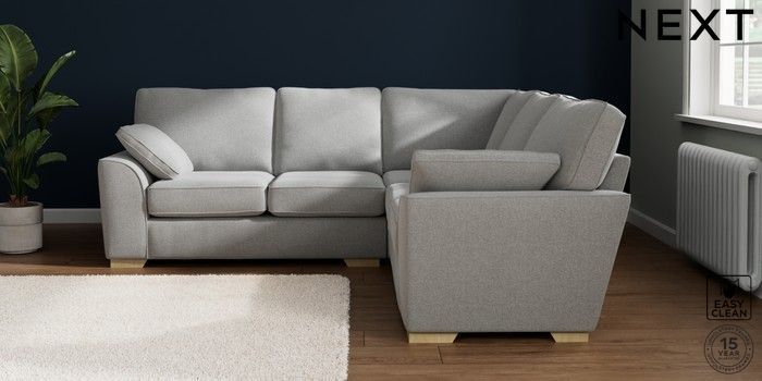 7.2.10 Stamford Medium Corner Sofa - Universal Tweedy Blend Easy Clean Light Silver Grey Large Square Angle - Light | Made Click here to use our website with more accessibility support, for example screen readers