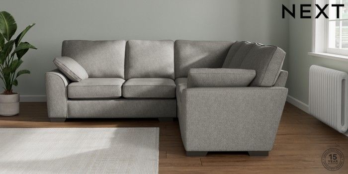 7.2.10 Stamford Medium Corner Sofa - Universal Tweedy Chenille Mid Grey Large Square Angle - Gunmetal | Made Click here to use our website with more accessibility support, for example screen readers