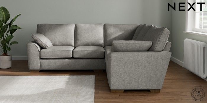 7.2.10 Stamford Medium Corner Sofa - Universal Tweedy Chenille Mid Grey Large Square Angle - Mid | Made Click here to use our website with more accessibility support, for example screen readers