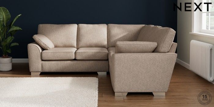 7.2.10 Stamford Medium Corner Sofa - Universal Tweedy Chenille Mid Natural Large Square Angle - Chrome Metal | Made Click here to use our website with more accessibility support, for example screen readers