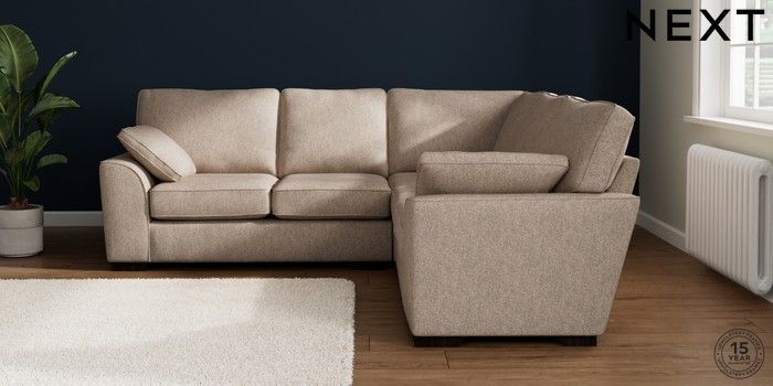 7.2.10 Stamford Medium Corner Sofa - Universal Tweedy Chenille Mid Natural Large Square Angle - Dark | Made Click here to use our website with more accessibility support, for example screen readers