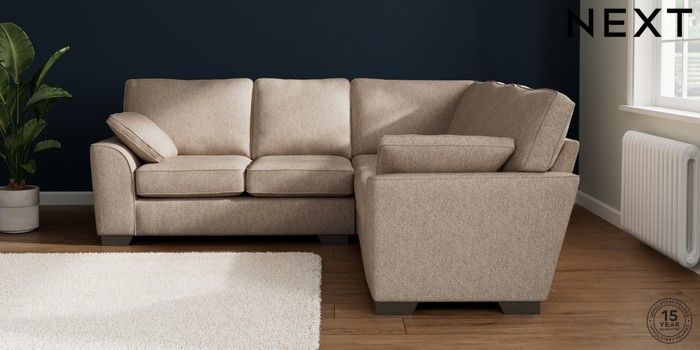 7.2.10 Stamford Medium Corner Sofa - Universal Tweedy Chenille Mid Natural Large Square Angle - Gunmetal | Made Click here to use our website with more accessibility support, for example screen readers