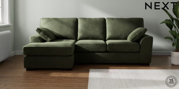 7.2.10 Stamford Medium Sofa Chaise - Left Hand Boucle Chenille Dark Moss Green Large Square Angle - Dark | Made Click here to use our website with more accessibility support, for example screen readers