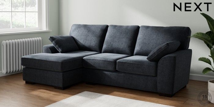7.2.10 Stamford Medium Sofa Chaise - Left Hand Boucle Chenille Dark Slate Blue Large Square Angle - Dark | Made Click here to use our website with more accessibility support, for example screen readers