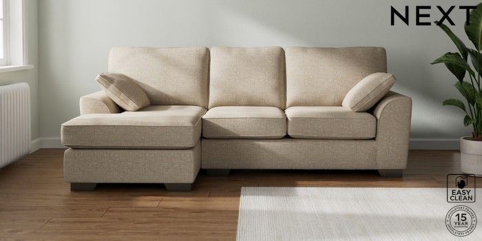 7.2.10 Stamford Medium Sofa Chaise - Left Hand Boucle Weave Easy Clean Dark Natural Large Square Angle - Gunmetal | Made Click here to use our website with more accessibility support, for example screen readers