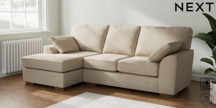 7.2.10 Stamford Medium Sofa Chaise - Left Hand Boucle Weave Easy Clean Dark Natural Large Square Angle - Mid | Made Click here to use our website with more accessibility support, for example screen readers
