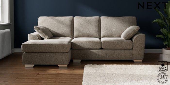 7.2.10 Stamford Medium Sofa Chaise - Left Hand Chunky Boucle Easy Clean Dove Large Square Angle - Chrome Metal | Made Click here to use our website with more accessibility support, for example screen readers