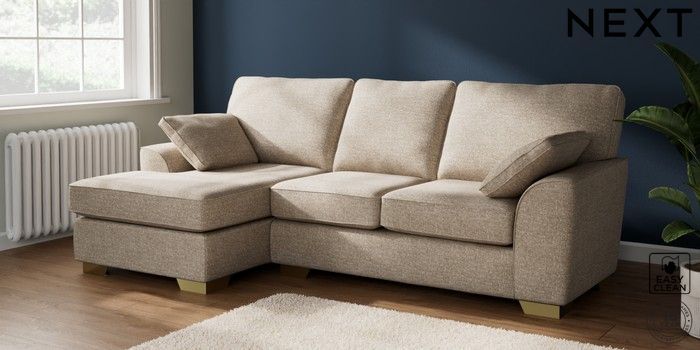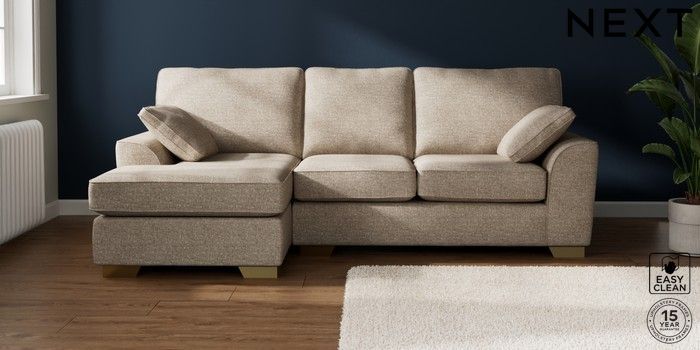 7.2.10 Stamford Medium Sofa Chaise - Left Hand Chunky Boucle Easy Clean Mid Natural Large Square Angle - Brushed Brass | Made Click here to use our website with more accessibility support, for example screen readers