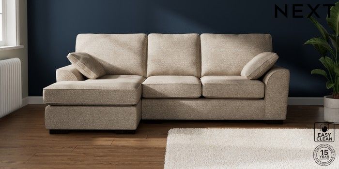 7.2.10 Stamford Medium Sofa Chaise - Left Hand Chunky Boucle Easy Clean Mid Natural Large Square Angle - Dark | Made Click here to use our website with more accessibility support, for example screen readers