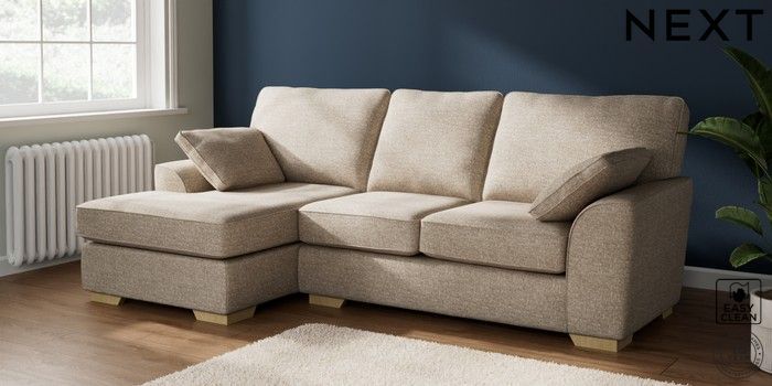 7.2.10 Stamford Medium Sofa Chaise - Left Hand Chunky Boucle Easy Clean Mid Natural Large Square Angle - Light | Made Click here to use our website with more accessibility support, for example screen readers