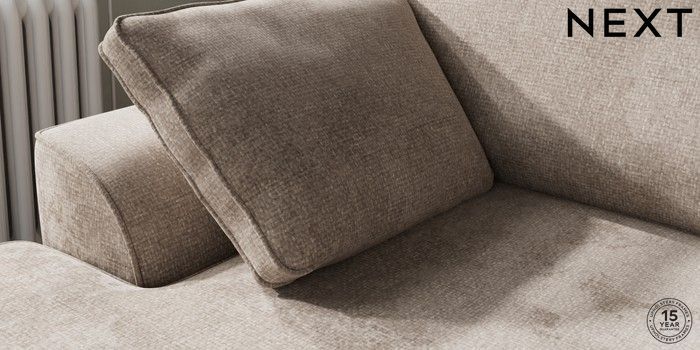 7.2.10 Stamford Medium Sofa Chaise - Left Hand Chunky Chenille Light Dove Large Square Angle - Brushed Brass | Made Click here to use our website with more accessibility support, for example screen readers