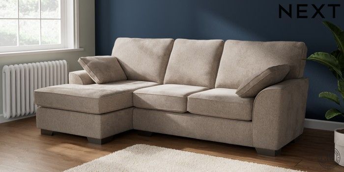 7.2.10 Stamford Medium Sofa Chaise - Left Hand Chunky Chenille Light Dove Large Square Angle - Gunmetal | Made Click here to use our website with more accessibility support, for example screen readers