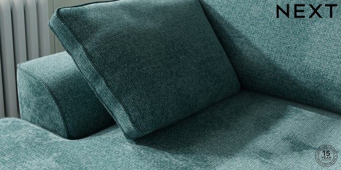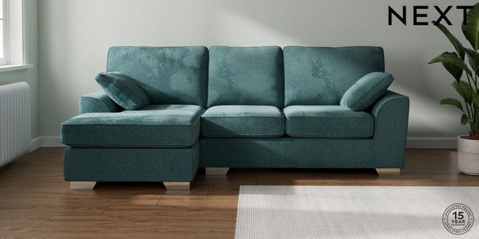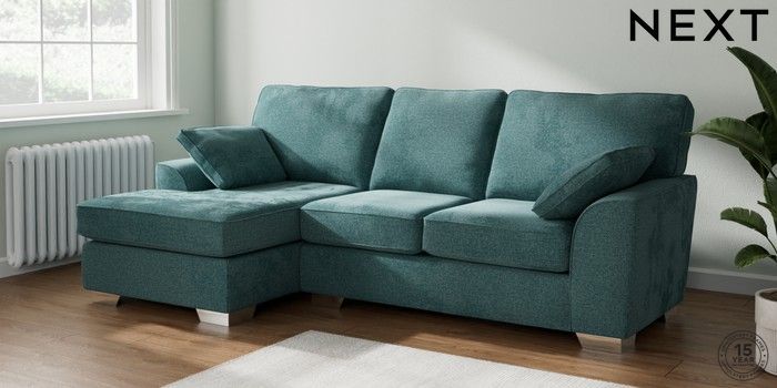 7.2.10 Stamford Medium Sofa Chaise - Left Hand Chunky Chenille Mid Teal Green Large Square Angle - Chrome Metal | Made Click here to use our website with more accessibility support, for example screen readers
