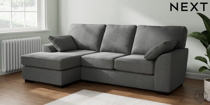 7.2.10 Stamford Medium Sofa Chaise - Left Hand Chunky Texture Dark Grey Large Square Angle - Dark | Made Click here to use our website with more accessibility support, for example screen readers