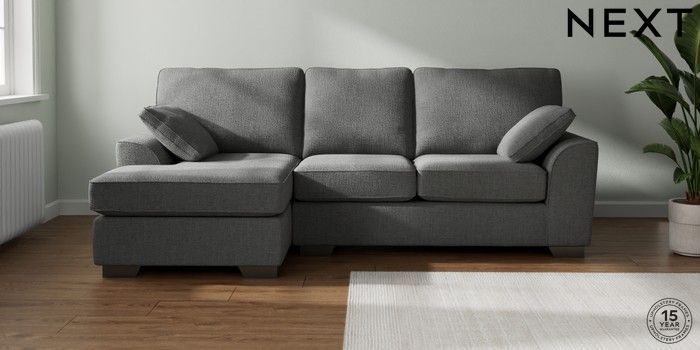 7.2.10 Stamford Medium Sofa Chaise - Left Hand Chunky Texture Dark Grey Large Square Angle - Gunmetal | Made Click here to use our website with more accessibility support, for example screen readers
