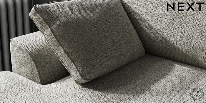7.2.10 Stamford Medium Sofa Chaise - Left Hand Chunky Texture Dove Large Square Angle - Chrome Metal | Made Click here to use our website with more accessibility support, for example screen readers