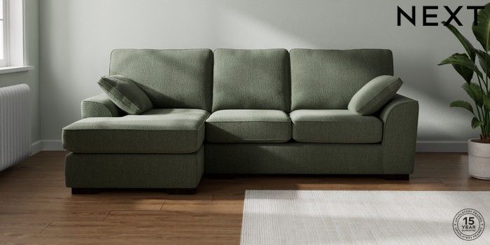7.2.10 Stamford Medium Sofa Chaise - Left Hand Chunky Texture Mid Forest Green Large Square Angle - Dark | Made Click here to use our website with more accessibility support, for example screen readers