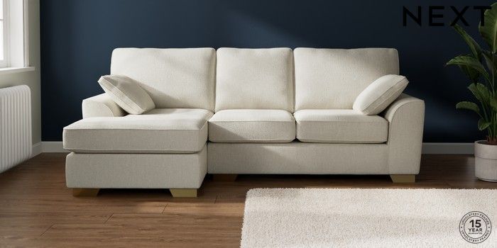 7.2.10 Stamford Medium Sofa Chaise - Left Hand Chunky Texture Oyster Large Square Angle - Brushed Brass | Made Click here to use our website with more accessibility support, for example screen readers