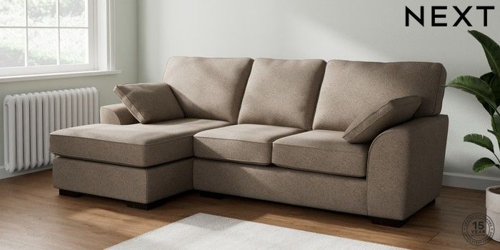 7.2.10 Stamford Medium Sofa Chaise - Left Hand Chunky Weave Dark Natural Large Square Angle - Dark | Made Click here to use our website with more accessibility support, for example screen readers