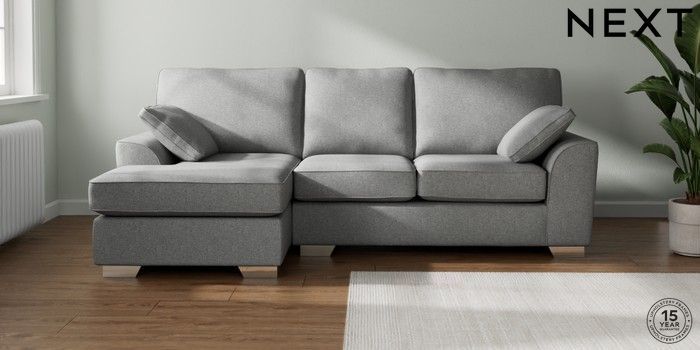 7.2.10 Stamford Medium Sofa Chaise - Left Hand Chunky Weave Mid Grey Large Square Angle - Chrome Metal | Made Click here to use our website with more accessibility support, for example screen readers