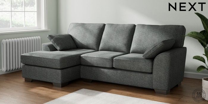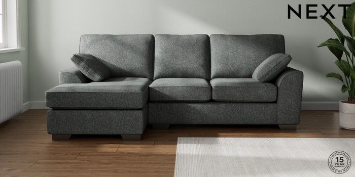 7.2.10 Stamford Medium Sofa Chaise - Left Hand Cotswold Chenille Dark Grey Large Square Angle - Gunmetal | Made Click here to use our website with more accessibility support, for example screen readers