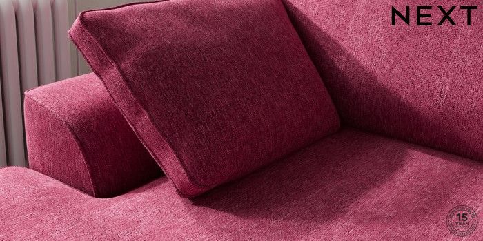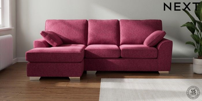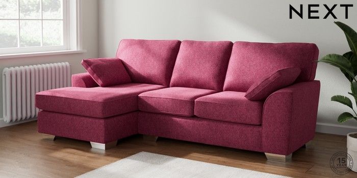 7.2.10 Stamford Medium Sofa Chaise - Left Hand Cotswold Chenille Dark Raspberry Pink Large Square Angle - Chrome Metal | Made Click here to use our website with more accessibility support, for example screen readers