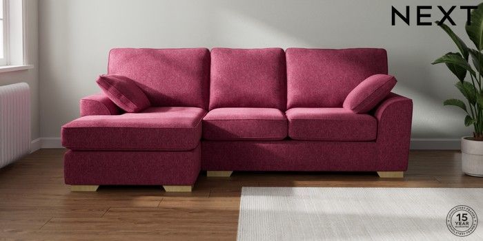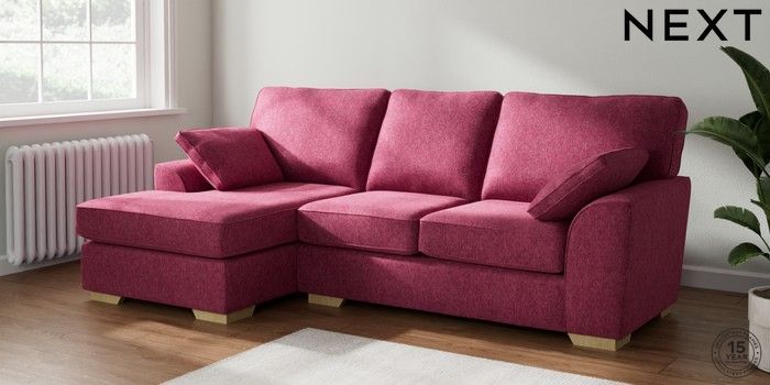 7.2.10 Stamford Medium Sofa Chaise - Left Hand Cotswold Chenille Dark Raspberry Pink Large Square Angle - Light | Made Click here to use our website with more accessibility support, for example screen readers