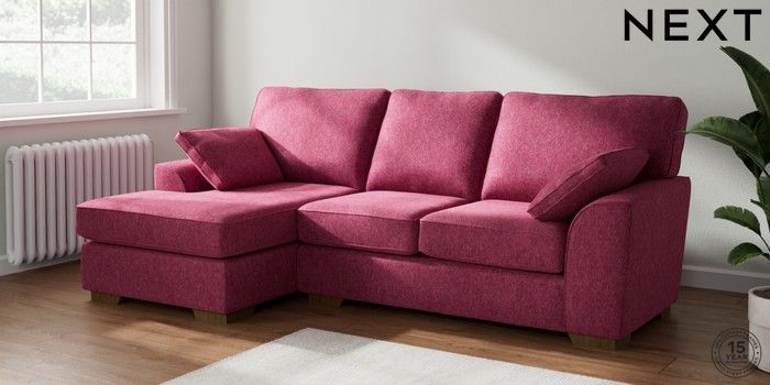 7.2.10 Stamford Medium Sofa Chaise - Left Hand Cotswold Chenille Dark Raspberry Pink Large Square Angle - Mid | Made Click here to use our website with more accessibility support, for example screen readers