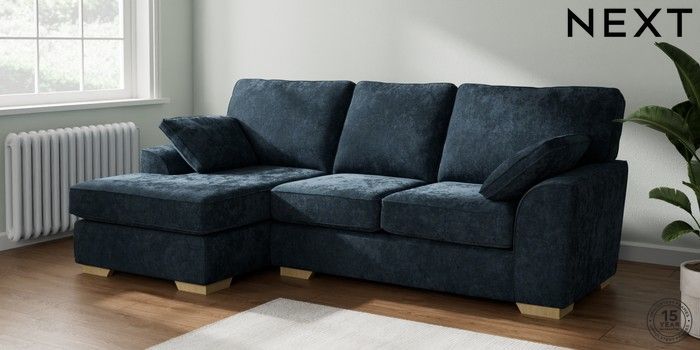 7.2.10 Stamford Medium Sofa Chaise - Left Hand Distressed Velour Midnight Blue Large Square Angle - Light | Made Click here to use our website with more accessibility support, for example screen readers