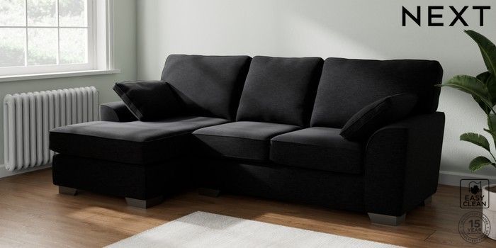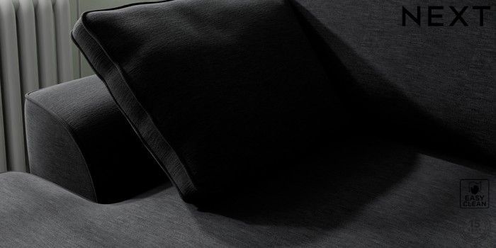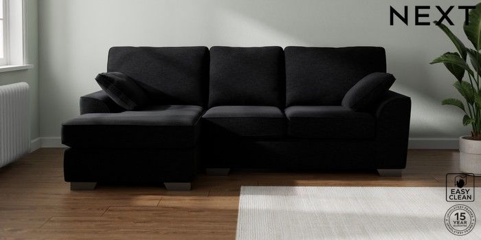 7.2.10 Stamford Medium Sofa Chaise - Left Hand Fine Chenille Easy Clean Black Large Square Angle - Gunmetal | Made Click here to use our website with more accessibility support, for example screen readers