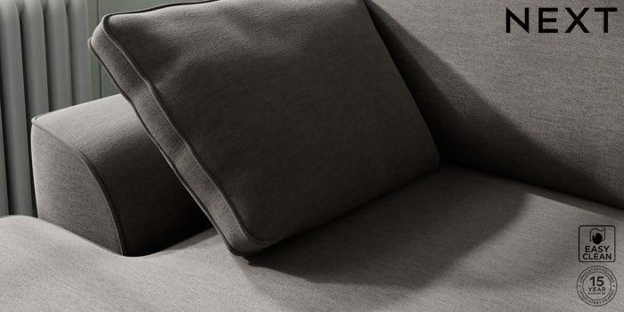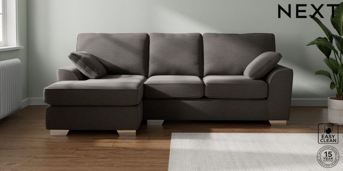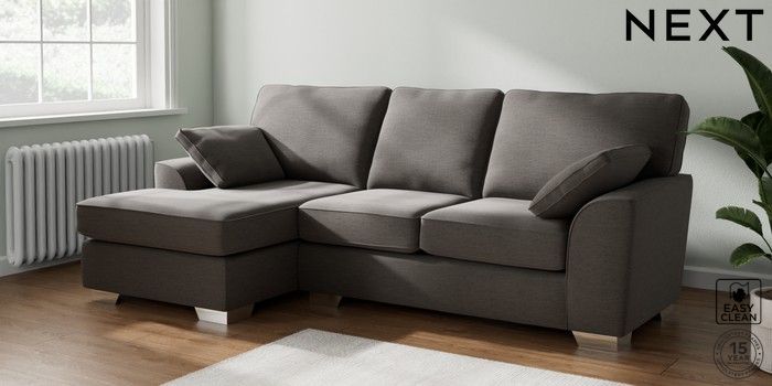 7.2.10 Stamford Medium Sofa Chaise - Left Hand Fine Chenille Easy Clean Dark Smoke Grey Large Square Angle - Chrome Metal | Made Click here to use our website with more accessibility support, for example screen readers