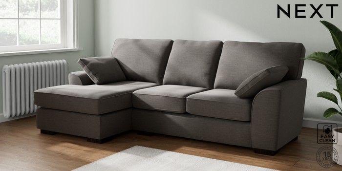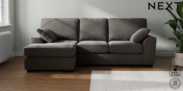 7.2.10 Stamford Medium Sofa Chaise - Left Hand Fine Chenille Easy Clean Dark Smoke Grey Large Square Angle - Dark | Made Click here to use our website with more accessibility support, for example screen readers