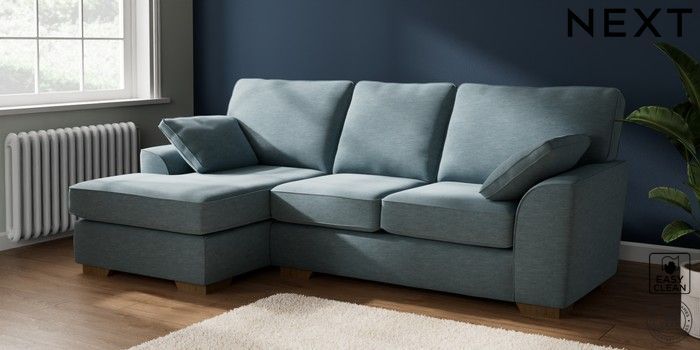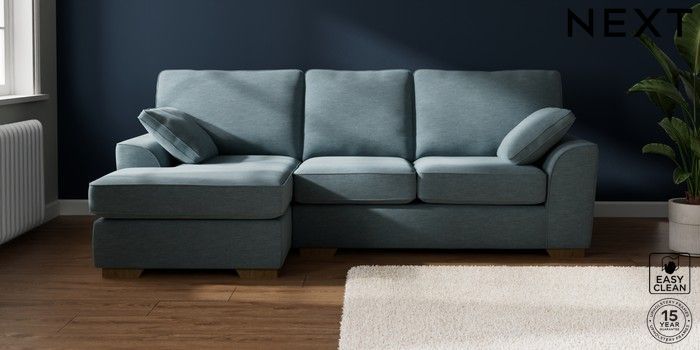 7.2.10 Stamford Medium Sofa Chaise - Left Hand Fine Chenille Easy Clean Mid Blue Large Square Angle - Mid | Made Click here to use our website with more accessibility support, for example screen readers