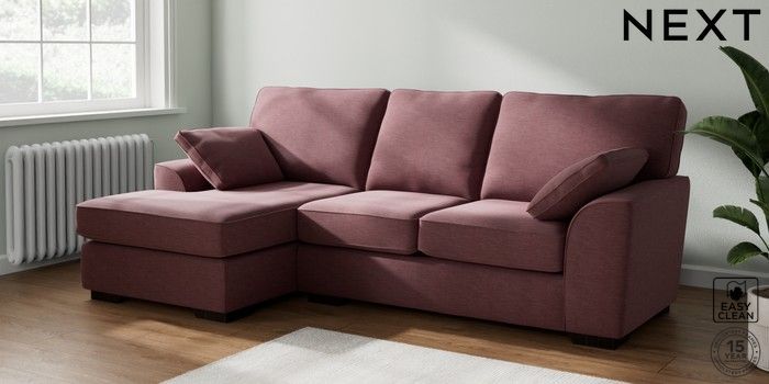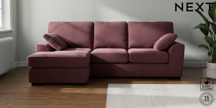 7.2.10 Stamford Medium Sofa Chaise - Left Hand Fine Chenille Easy Clean Mid Mulberry Purple Large Square Angle - Dark | Made Click here to use our website with more accessibility support, for example screen readers