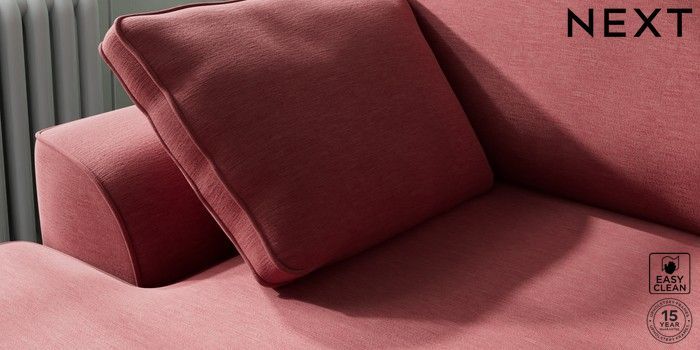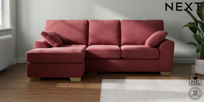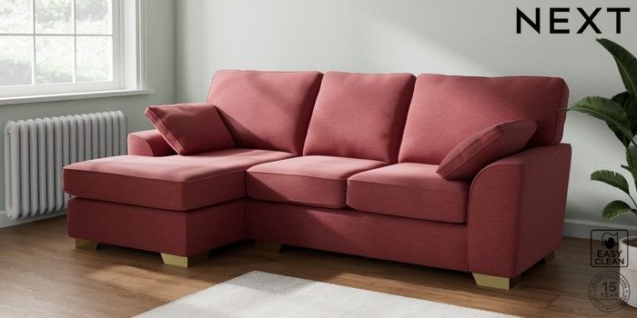 7.2.10 Stamford Medium Sofa Chaise - Left Hand Fine Chenille Easy Clean Mid Pink Large Square Angle - Brushed Brass | Made Click here to use our website with more accessibility support, for example screen readers