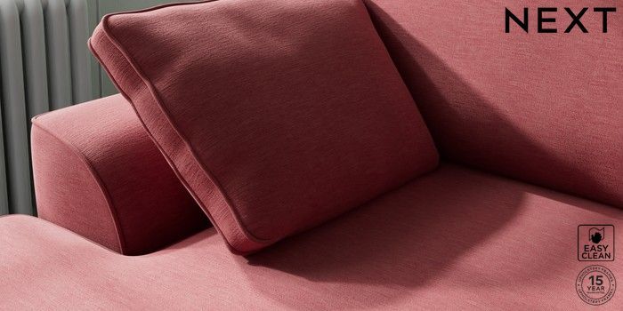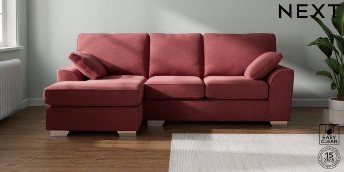 7.2.10 Stamford Medium Sofa Chaise - Left Hand Fine Chenille Easy Clean Mid Pink Large Square Angle - Chrome Metal | Made Click here to use our website with more accessibility support, for example screen readers