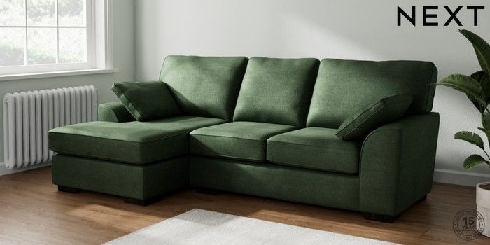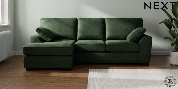7.2.10 Stamford Medium Sofa Chaise - Left Hand Luxe Chenille Dark Green Large Square Angle - Dark | Made Click here to use our website with more accessibility support, for example screen readers