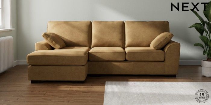 7.2.10 Stamford Medium Sofa Chaise - Left Hand Luxe Chenille Honey Yellow Large Square Angle - Dark | Made Click here to use our website with more accessibility support, for example screen readers